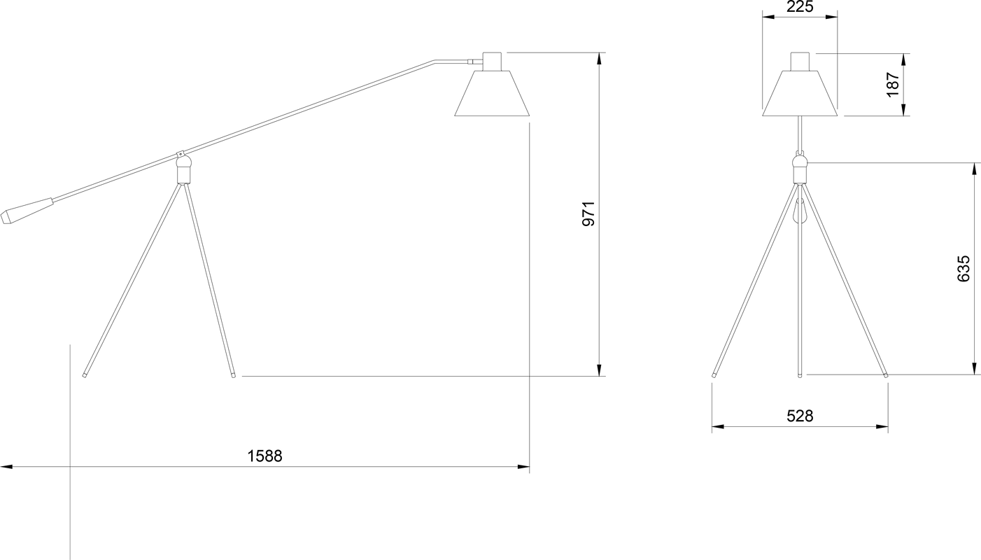 The Magneto is a very functional lamp. Thanks to the magnetic ball, the rod with the shade can be rotated in any position. The light source is deeply hidden in the hood which creates a pleasant reading light that shines where you want it. The frame with the tripod is both elegant and stable.